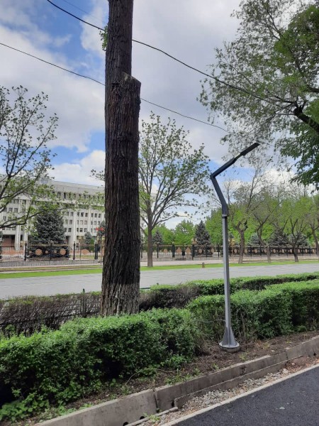 В это же время Бишкексветовцы продолжают работы и на втором объекте – кольцевой велодорожке в южной части города, здесь ведутся земельные работы: копка траншеи под кабельную линию и установка торшерных стоек по улице Байтика Баатыра.