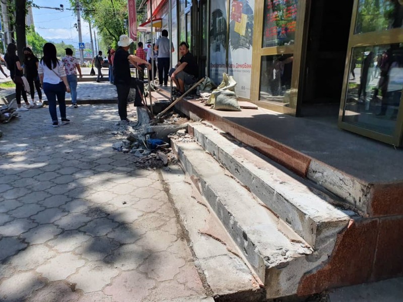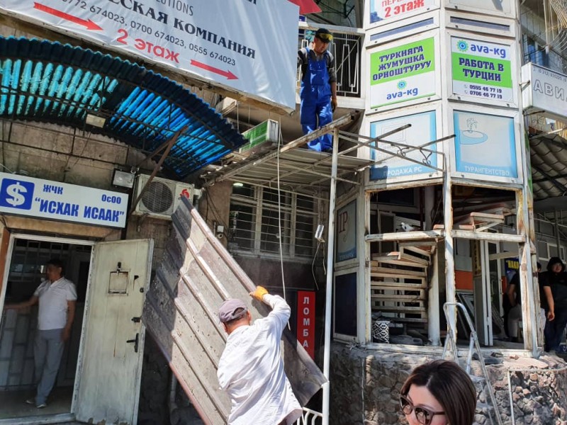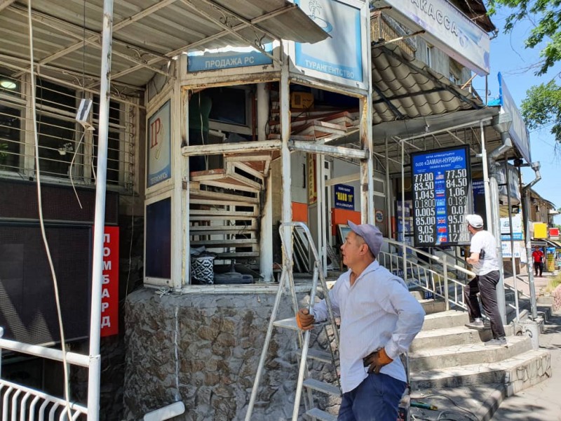 Прямо сейчас команда управления землепользования и строительства (УЗС) вместе со спецподразделением МП “Тазалык” демонтирует мешающие пешеходной зоне входные группы и пристройки по ул. Байтика Баатыра на отрезке улиц Московской и Боконбаева.