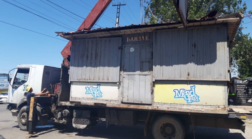Сотрудники управления землепользования и строительства (УЗС) и спецподразделения МП «Тазалык» продолжают демонтаж незаконно установленных объектов и в режиме ЧС.