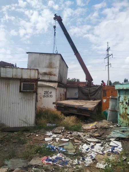 Сотрудники управления землепользования и строительства (УЗС) и спецподразделения МП «Тазалык» продолжают демонтаж незаконно установленных объектов.
