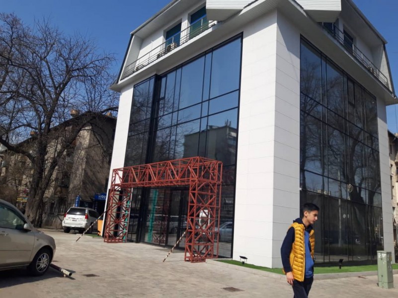 После разъяснительных бесед с администрацией банка "ДосКредоБанк", они добровольно убрали металлическую конструкцию под входную группу на перекрестке проспекта Манаса и улицы Токтогула.