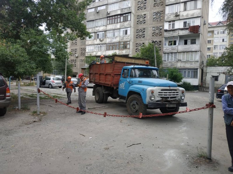 В ходе комиссионного объезда городских служб на территории МТУ №5 на улице Тыналиева 9/1, мы обнаружили захват муниципальной территории под организацию гостевой автопарковки, уже были установлены незаконно металлические ограждения. После доверительных и разъяснительных бесед, «захватчики» добровольно начали демонтаж.