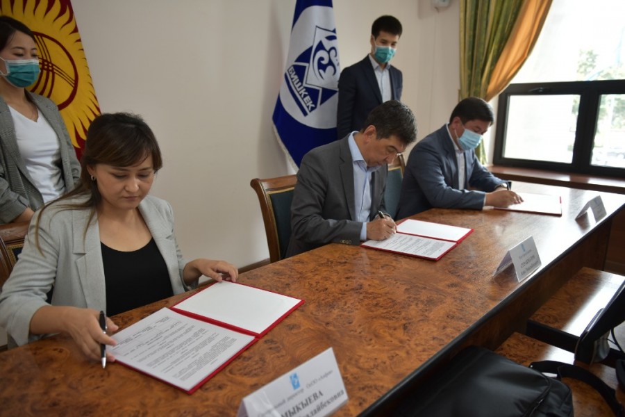 В столичном муниципалитете, строго соблюдая санитарные нормы, состоялась церемония подписания меморандума о сотрудничестве между мэрией Бишкек и ОАО транснациональной корпорацией «Дастан» и компанией «Анфея».
