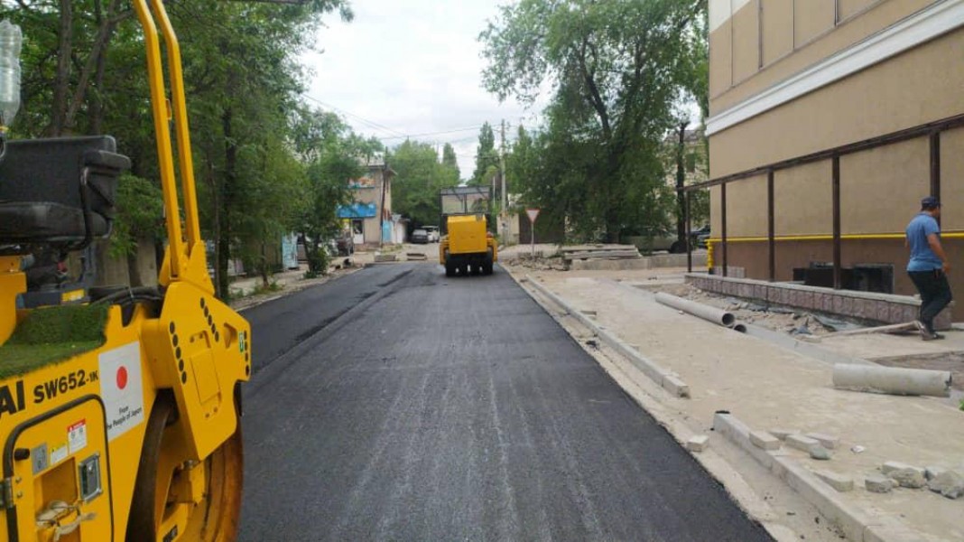Город продолжает работу по планам на 2020 год. Сотрудники муниципального предприятия «Бишкекасфальтсервис», соблюдая санитарные нормы, ведут капитальный ремонт сразу на нескольких улицах.