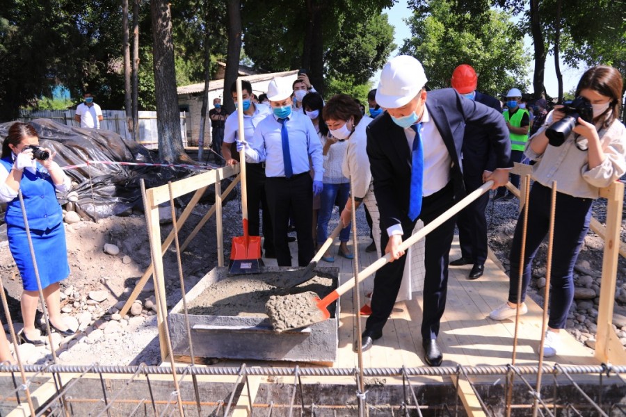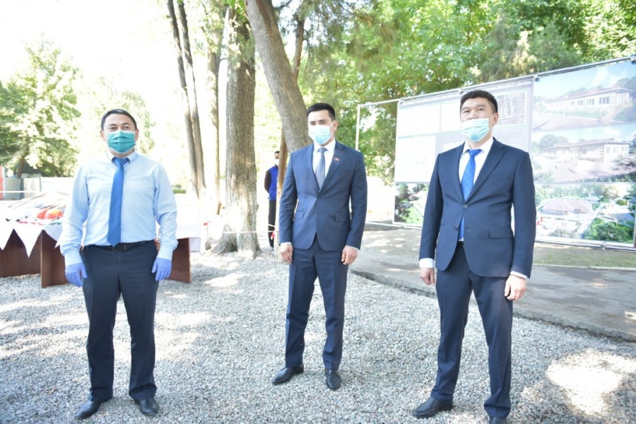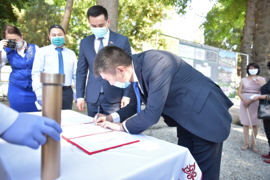 Капсулу в фундамент пристройки, строго соблюдая санитарные нормы, заложили спикер Бишкекского городского Кенеша Жаныбек Абиров, вице-мэр столицы по строительству и архитектуре Уланбек Азыгалиев и глава района Мурат Осмонов.
