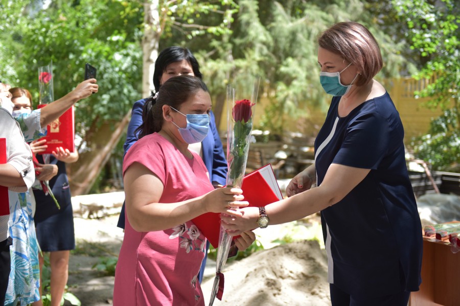 В честь дня медицинского работника, вице-мэр столицы по социальной политике Татьяна Кузнецова поблагодарила каждого сотрудника, отличившимся вручила почетные грамоты и ценные подарки.