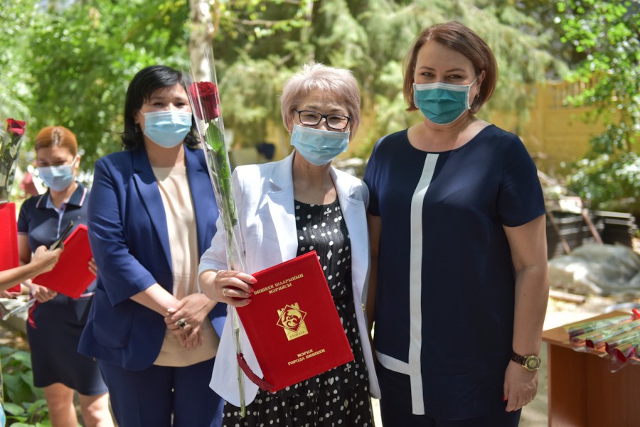 Нагрудным знаком «Золотой значок мэрии города Бишкек» награжден главный санитарный врач ЦГСЭН Кубан Кундашев, серебряным значком муниципалитета награждена заведующая отделом коммунальной гигиены ЦГСЭН Айгуль Бейшеналиева.