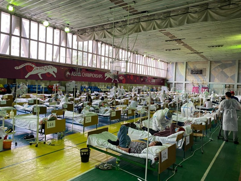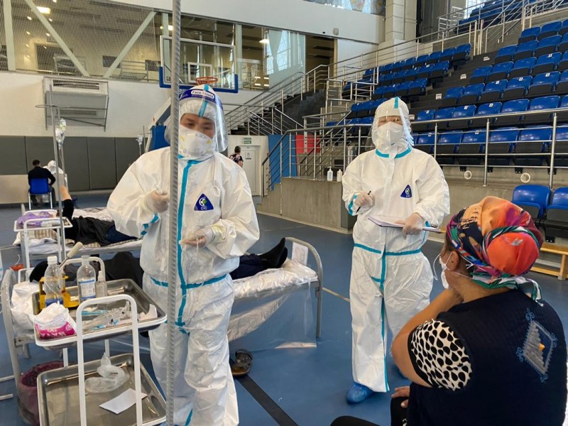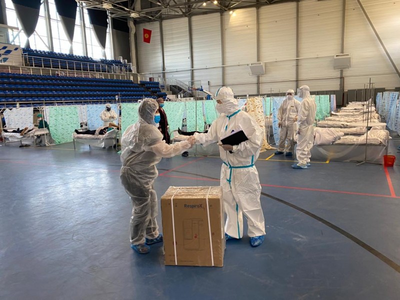При поддержке частного сектора в каждом стационаре мэрии установлены кислородные концентраторы: во дворце спорта им.Кожомкула - 10 штук, ФОК «Газпром» - 8, СДЮСШОР в Востоке-5 - 10, МП «Бишкекпекарня» - 9.