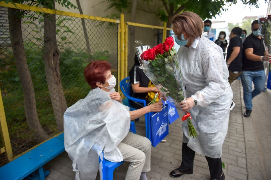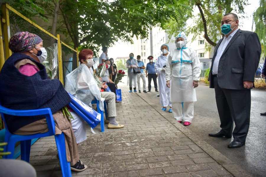 Сегодня после крайней капельницы и уколов в дневном стационаре во дворце спорта им. Кожомкула, выздоровевших горожан домой проводили вице-мэр столицы по социальной политике Татьяна Кузнецова, руководитель аппарата столичной мэрии Балбак Түлөбаев.