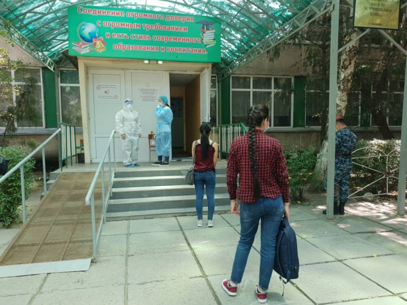 Все тестовые центры продезинфицированы, везде установлены санитайзеры, сотрудники и школьники обеспечены средствами индивидуальной защиты, перед началом теста у каждого выпускника замерена температура. На месте дежурили медики и сотрудники милиции.