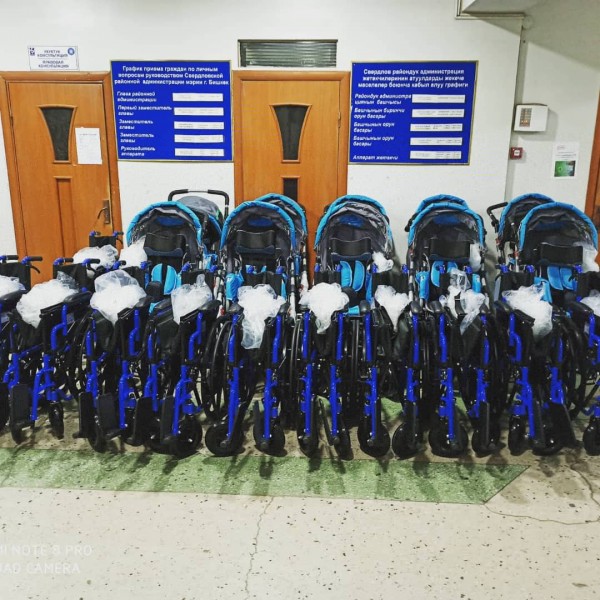 11 колясок для взрослых и 15 детских были приобретены по обращениям горожан при поддержке министерства труда и социального развития КР.