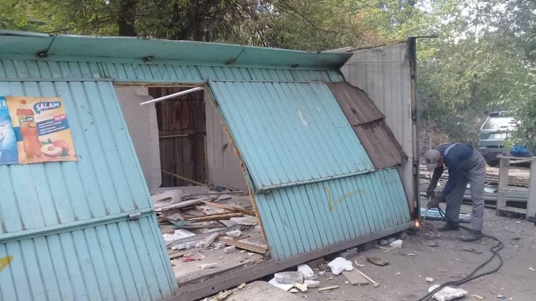 Снос начался с самовольно установленного павильона в микрорайоне №3 возле дома №24. Затем не стало еще двух на улице Юнусалиева 177/2. Неподалеку на перекрестке улицы Сухэ-Батора и улицы Юнусалиева без разрешения работали еще два торговых магазина, пришлось демонтировать.