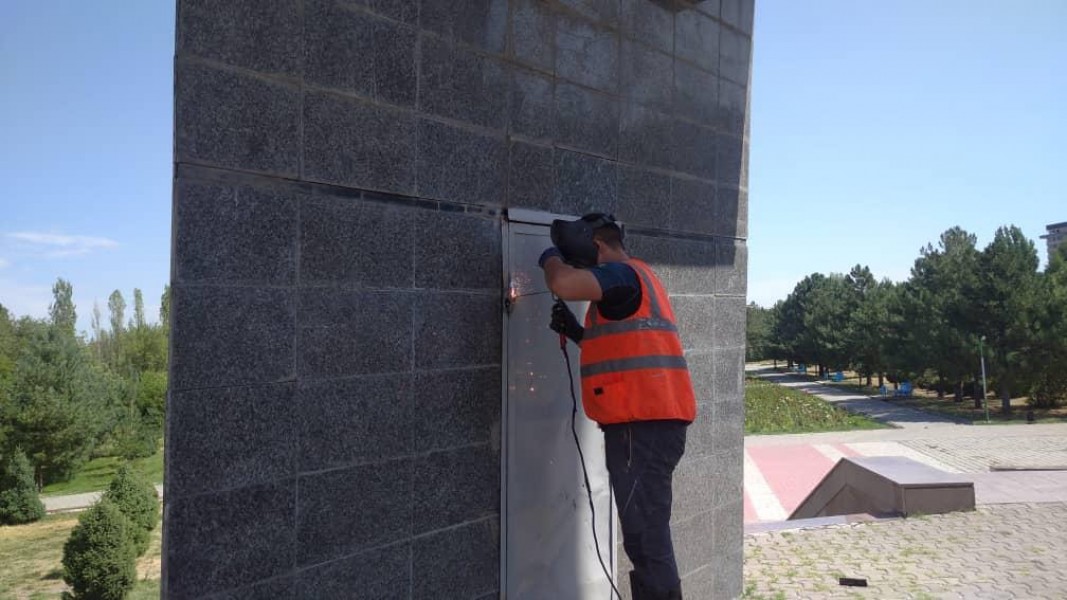 К слову о памятниках, только что мы починили еще дверь монумента в парке Победы имени Дайыра Асанова на южных воротах.