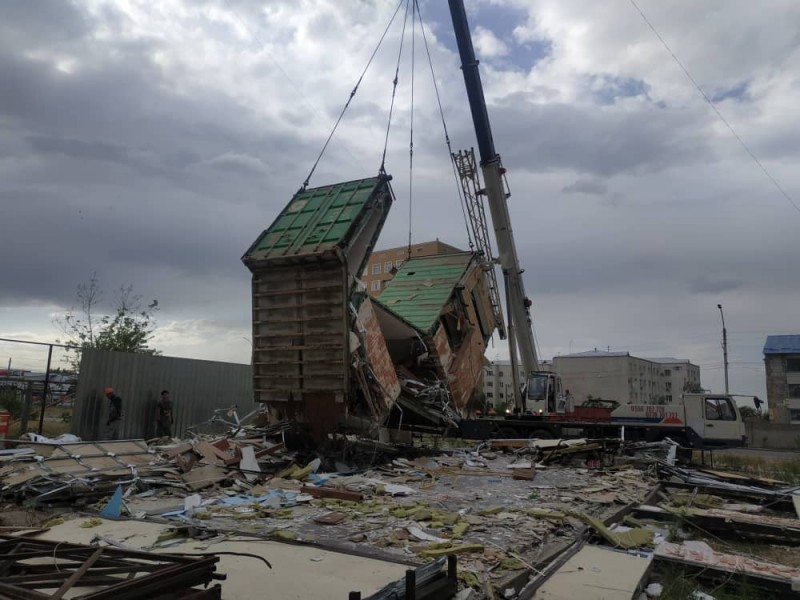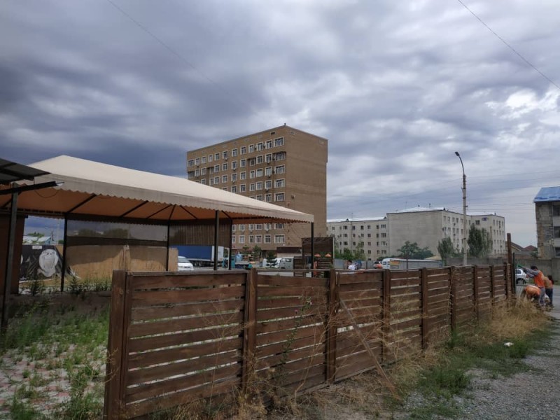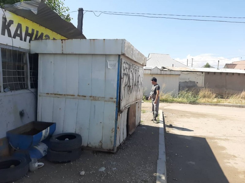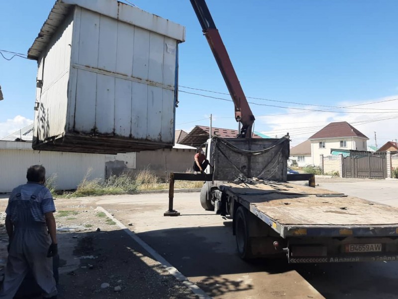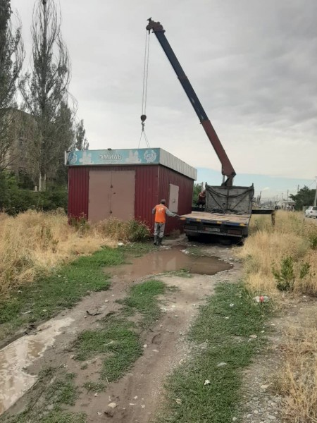 Сегодняшний снос начался с самовольно установленных павильонов в жилом массиве «Рухий-Мурас» и напротив КРСУ в микрорайоне «Тунгуч».