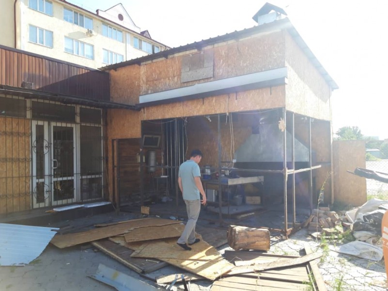 Затем нам пришлось разобрать незаконно установленное кафе «PIV Треск» с летней площадкой и 130 метров металлического и деревянного ограждения на пересечении улиц Ахунбаева и Курчатова, тем самым мы вернули городу 820 квадратных метров.