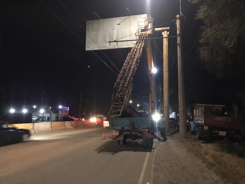 Следующими под демонтаж попали рекламные конструкции на перекрестках улиц Сухэ-Батора и Юнусалиева, Ден Сяопина и Кустанайской, Киевской и Логвиненко, Киевской и Тыныстанова и на улице Тыналиева в микрорайоне «Джал».