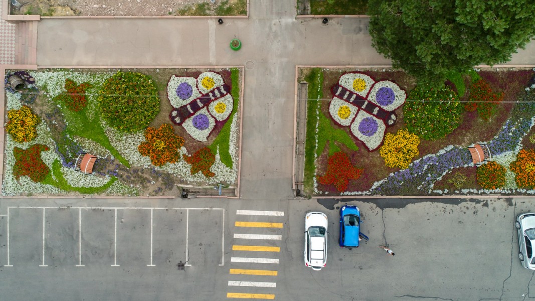А на центральной площади «Ала-Тоо» красуются яркие цветочные бабочки, их высадила команда начальника участка Руслана Жаныгулова МП «Тазалык». Посажено порядка 48 тысяч цветов, среди них: седум, сальвия, агератум, алиссум (бордовый и белый), тагетис (красный, лимонный и оранжевый), бархатцы (лимонный и помпонный), цинерария, петунья фиолетовая, портулак, колеус бордовый.