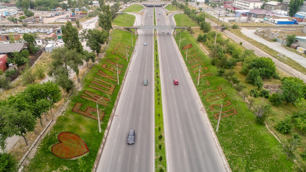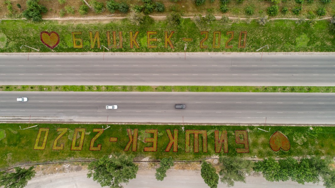 Например, только на откосах вдоль улицы Ч. Валиханова, в начале лета мы создали цветочную надпись «Бишкек-2020» из почти 35-ти тысяч цветов. На радость всем бишкекчанам на обеих сторонах откосов цветут колуесы, катарантусы, сальвия.