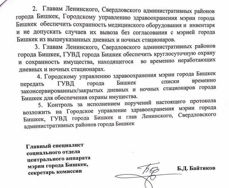 Горожан продолжат поддерживать дневной стационар на базе дворца спорта им. Кожомкула и круглосуточный стационар в муниципальном предприятии “Бишкекпекарня” в 12-м микрорайоне.