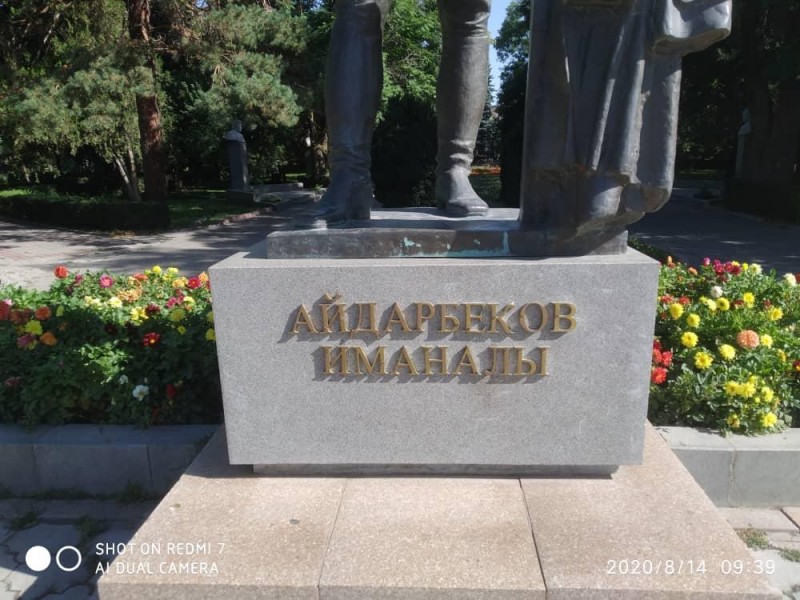 Вчера пользователь Telegram-канала «Бишкек сегодня» пожаловался на то, что у памятника Иманалы Айдарбекову в парке им. Ч. Айтматова повреждена надпись.