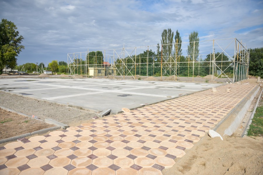 Город продолжает работу. Строительство нового спортивного парка в северной части города на пересечении улиц Манаса и Боталиева (Щербакова) продолжается, строго соблюдены меры защиты от КОВИД-19.