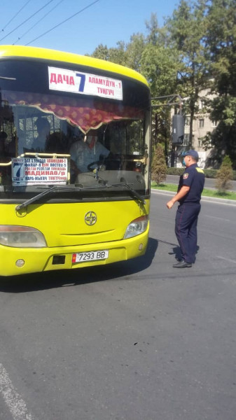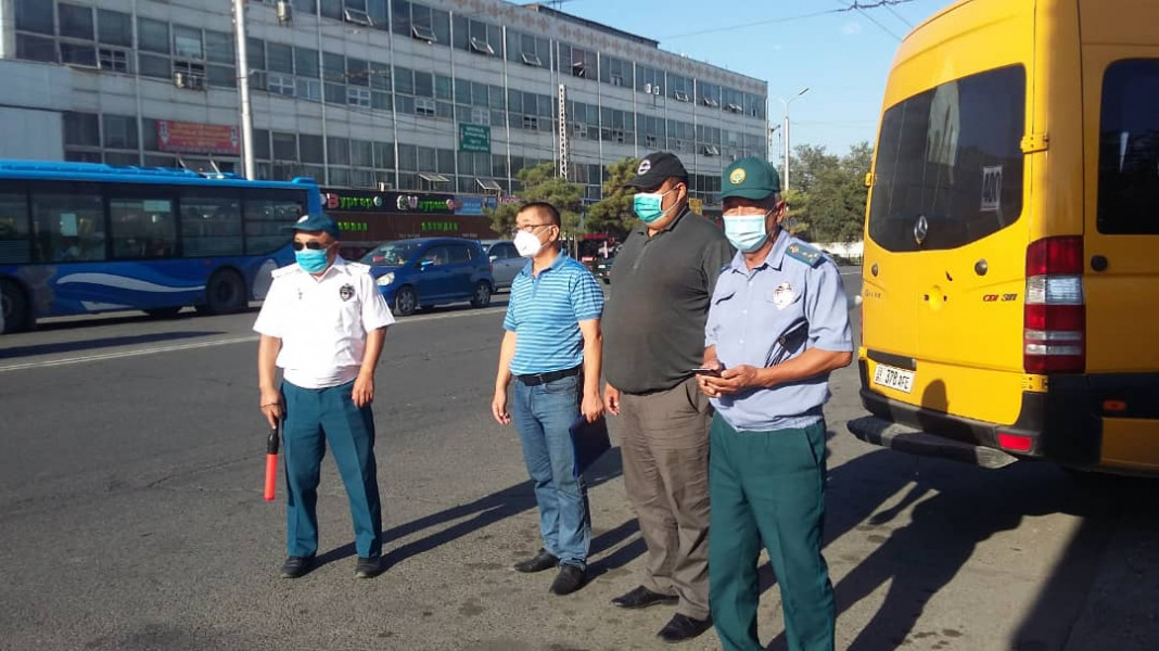 Специалисты управления городского транспорта (УГТ), троллейбусного управления (БТУ) и автобусного парка (МП «БПАТП») совместно с ЦГСЭН, патрульной милицией (УПСМ) и транспортной инспекцией при министерстве транспорта и дорог КР ежедневно проверяют салоны общественного транспорта на наличие санитайзеров, соблюдение санитарной чистоты и дистанции, в зависимости от количества сидячих мест, а также проводят разъяснительные беседы с водителями и пассажирами.