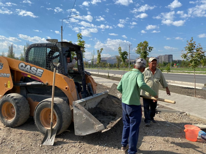 Прямо сейчас сотрудники МП «Бишкекасфальтсервис» прокладывают тротуары и велодорожки, устанавливают бордюры, ирригационные сети. МП «Бишкекзеленоз» проводит санитарную обрезку деревьев и поднятие кроны зеленых насаждений.