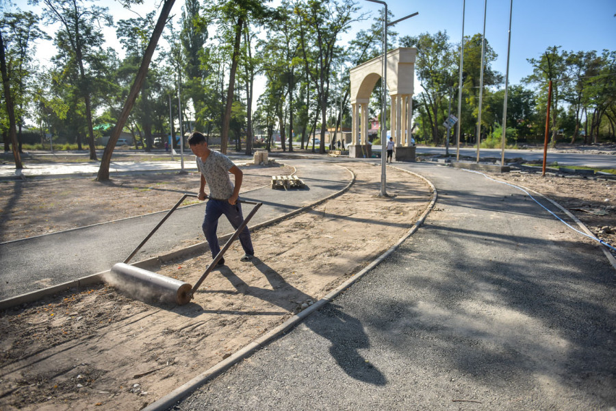 В самом разгаре строительство еще одного парка площадью более 7,4 га в северной части города, на пересечении улиц Манаса и Боталиева.