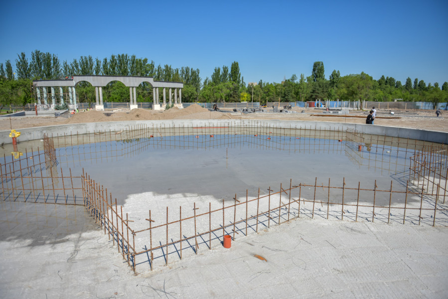Фонтаны уже сформированы и забетонированы, полностью проложены инженерные сети. Предусмотрена и современная система полива. Готовы к установке 186 современных фонарей, которые будут освещать пространство, для них проведены электрические сети, протяженность которых достигла 3700 метров. Уже разбиты аллеи, готовится основание под брусчатку, параллельно идет работа над входной группой.