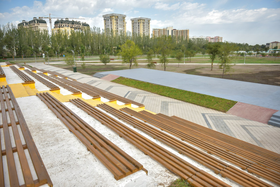 Городские службы продолжают строительство новых парков и скверов. По поручению мэра столицы Азиза Суракматова мы активно обновляем «легкие» города, увеличиваем пешеходные зеленые зоны.