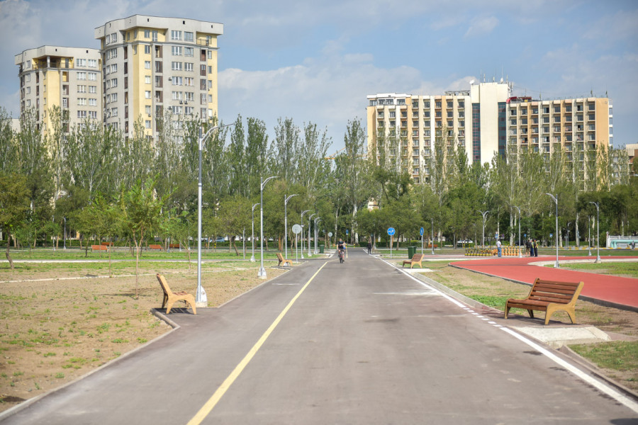 Строительство нового парка площадью 8,4 гектаров тоже в самом разгаре. Над зеленой зоной работают муниципальные предприятия «Бишкекасфальтсервис», «Бишкексвет», «Бишкекзеленхоз», проект принадлежит архитекторам Бишкекглавархитектуры.