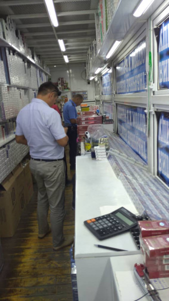 Ошский рынок снова под прицелом. Накануне инспекторы налоговой службы при содействии акима района Чынасыла Чыныбаева и правоохранительных органов провели совместный рейд на оптовых точках ТРК «Ош базары» по выявлению контрафактной и сомнительной алкогольной и табачной продукции.
