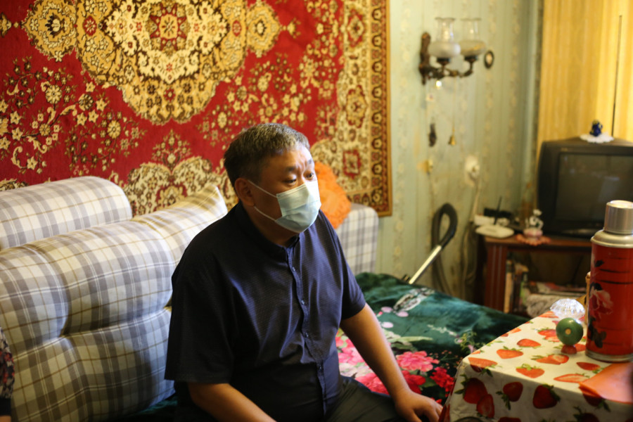 Аким района привез ветерану инвалидную кресло-коляску, продуктовые наборы и для настроения подарил цветы.