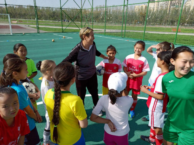 На первых тренировках для новеньких девочек провели мастер-классы футболистки сборной женской команды города и национальной сборной младше 15 лет Арууке Дюшеева, Аделаида Мурзалиева и София Немченко.