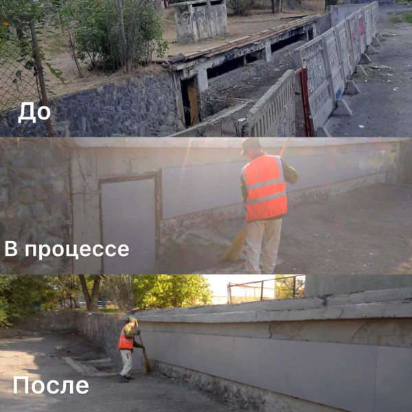 По поручению А.Дороева отряд муниципального предприятия МП «Бишкекасфальтсервис» провели демонтаж бетонного ограждения, а отряд-чистоты муниципального предприятия «Тазалык» вывезли мусор и привели в порядок прилегающую территорию. Затем помещение «заколотили».