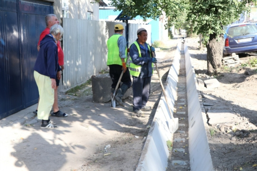 Город продолжает работу. Прямо сейчас муниципальное предприятие «Бишкекзеленхоз» прокладывает ирригацию по улице Алтымышева в Рабочем городке.