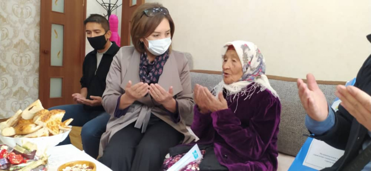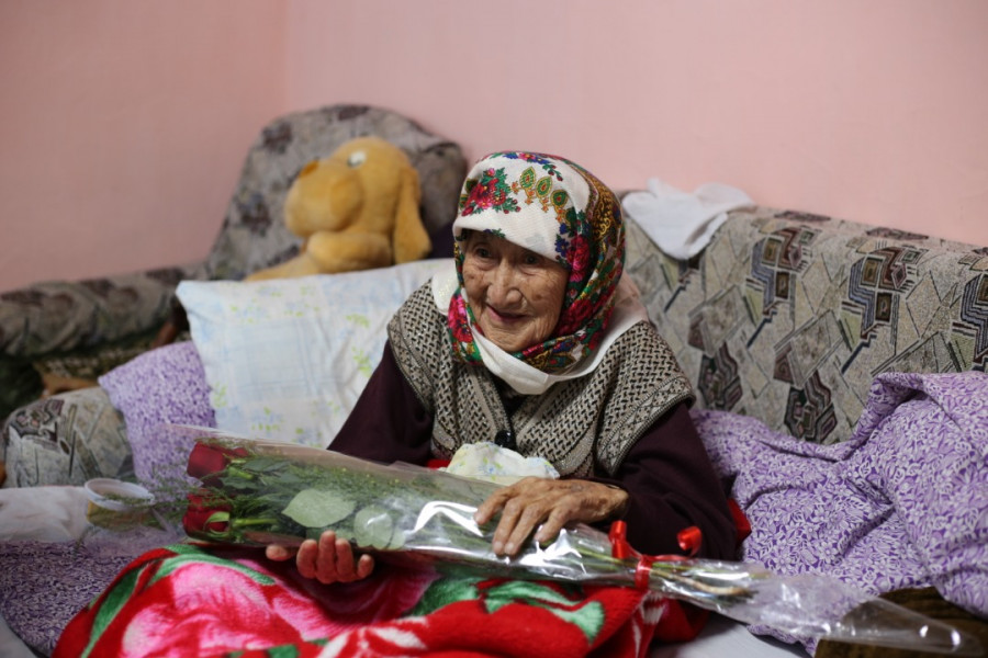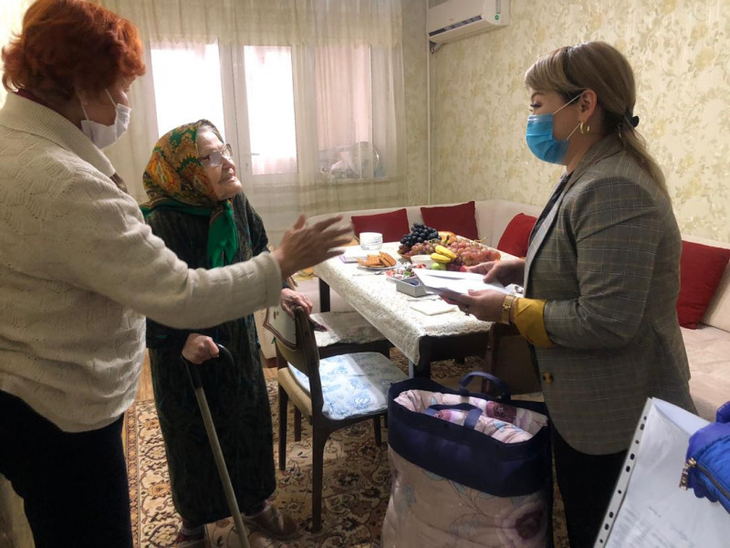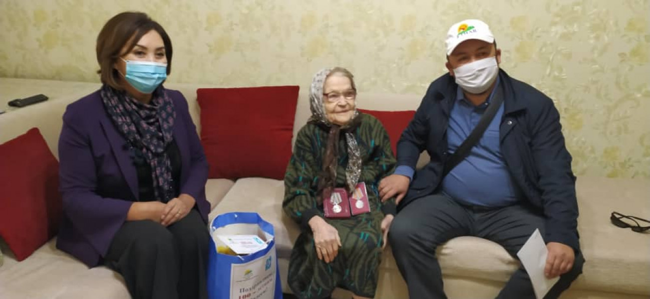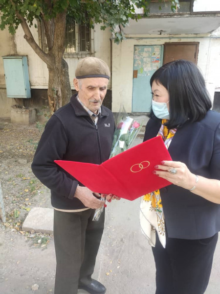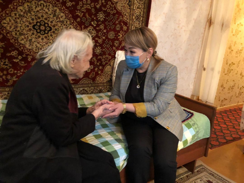 Акимы четырех районов со строгим соблюдением санитарных норм и правил поздравили каждого долгожителя столицы, к слову их у нас 18 человек (старше 100 лет).