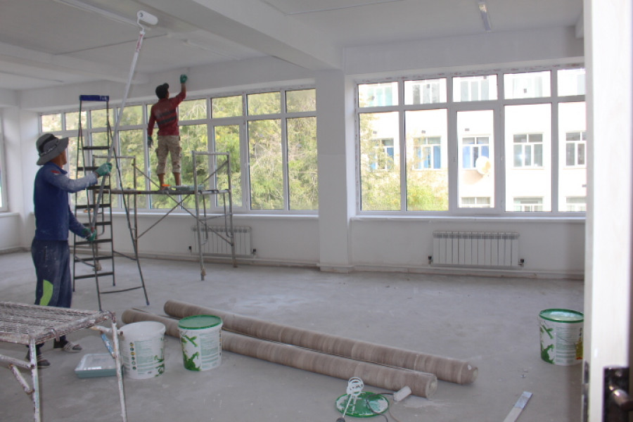Над новым учебным корпусом работает подрядная компания «НАК Строй» за 46 миллионов 666 тысяч 728 сомов, средства выделены из депозитного счета по борьбе с коррупцией.