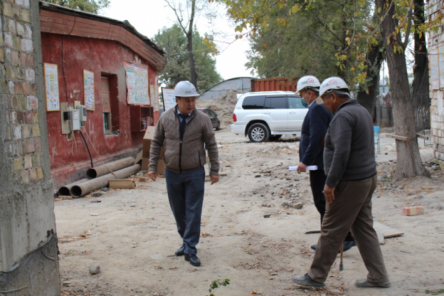 Аким Свердловского района Мурат Осмонов почти переехал на место строительства, постоянно следит за качеством строительства.