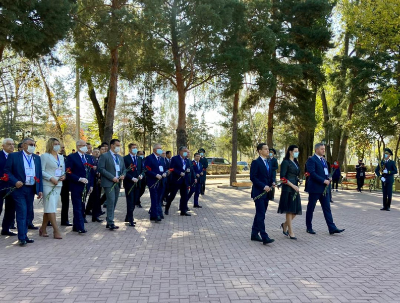 Сегодня международные наблюдатели от межпарламентской ассамблеи стран СНГ во главе с генеральным секретарем Совета МПА СНГ Дмитрием Кобицким, представители от Парламентской ассамблеи ОДКБ, участвующие в наблюдении за выборами депутатов Жогорку Кенеша КР, вместе с вице-мэром столицы Викторией Мозгачевой возложили цветы к памятнику блокадникам Ленинграда в парке Победы им. Д. Асанова на Южных воротах.