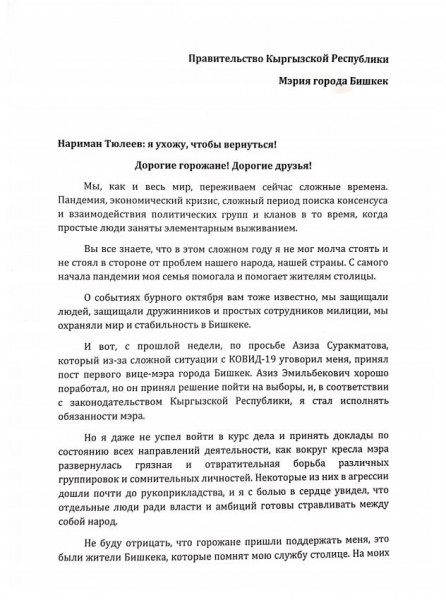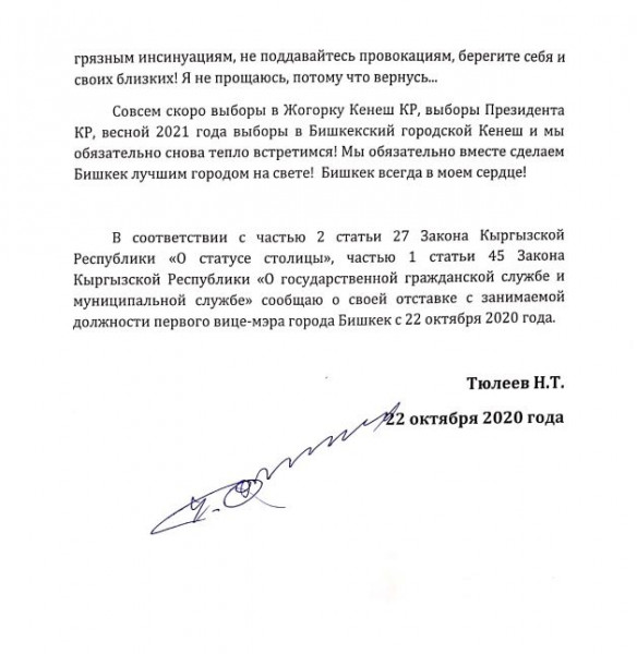 Просим вас ознакомиться с заявлением Тюлеева Наримана Ташболотовича.