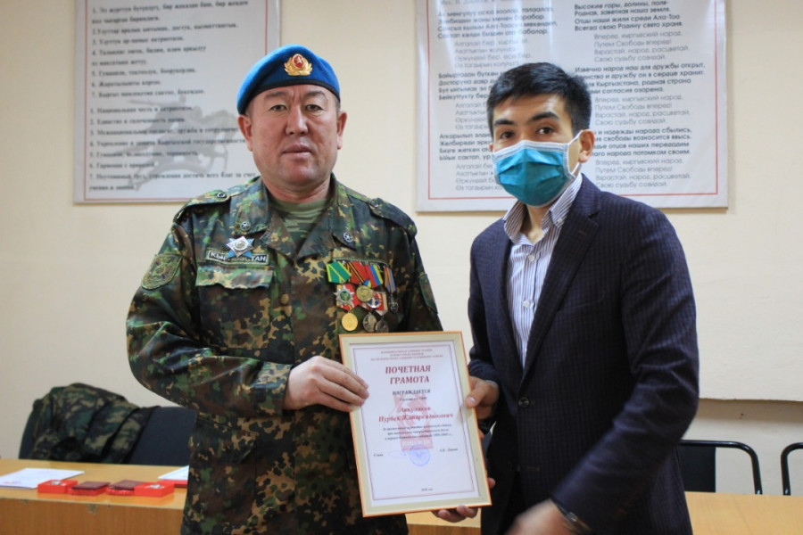 Первый заместитель главы Октябрьского района Кубанычбек Айтакунов искренне поблагодарил военных, которые участвовали в тех событиях и поныне служат Отечеству: