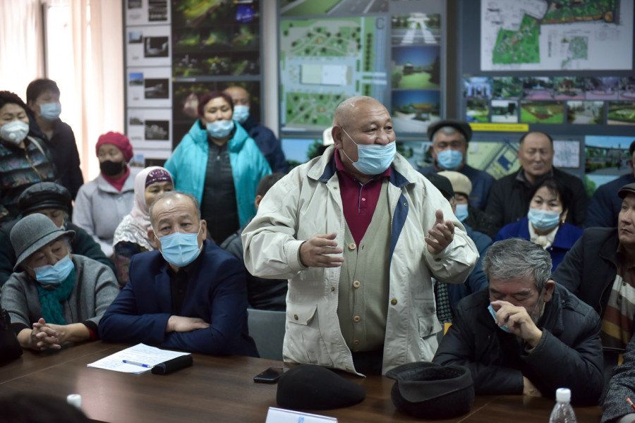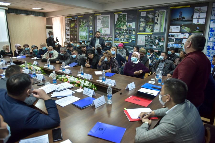 На встрече приняли участие активные жители жилых массивов "Көлмө", "Ак-Бата", "Ак-Өргө", "Ак-Тилек", "Ынтымак", "Ак-Босого", "Келечек", "Калыс-Ордо", "Мурас-Ордо", вице-мэры столицы Уланбек Азыгалиев (по строительству и архитектуре) и Азизбек Алымкулов (по земельной и транспортной политике), а также руководители городских служб.