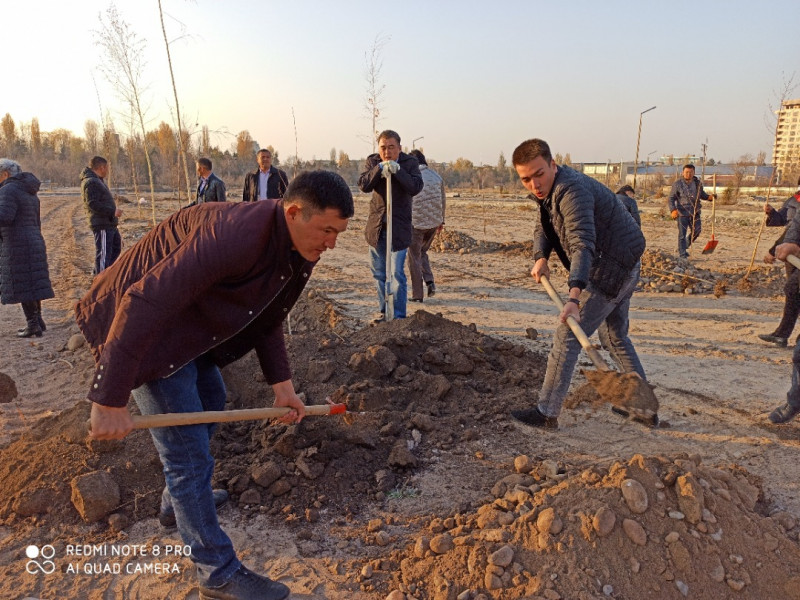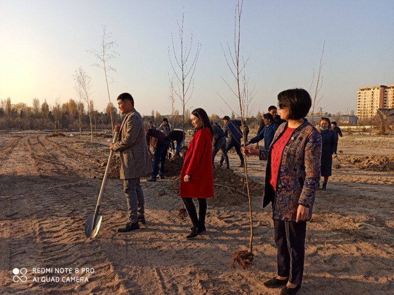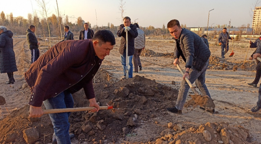 УКС посадил 40 саженцев березы в новом строящемся парке «Балалык» на пересечении улиц Байтик Баатыра и Токомбаева.