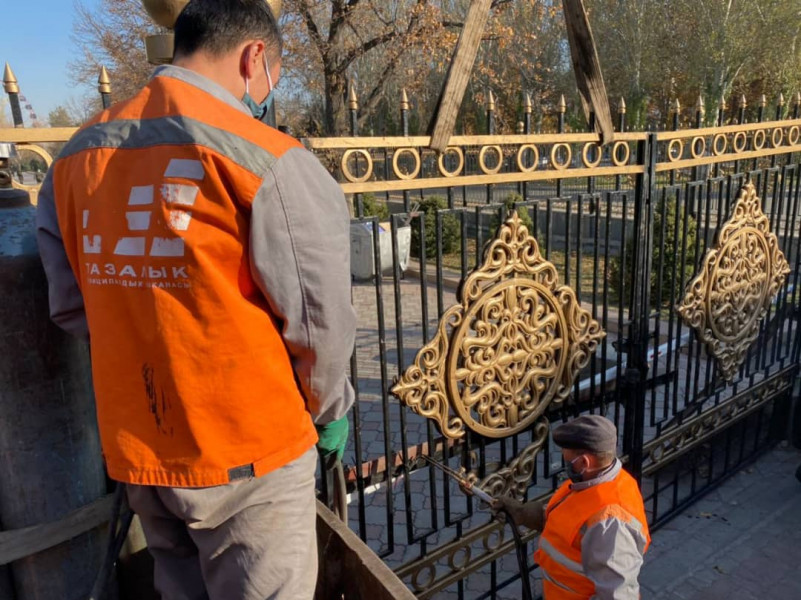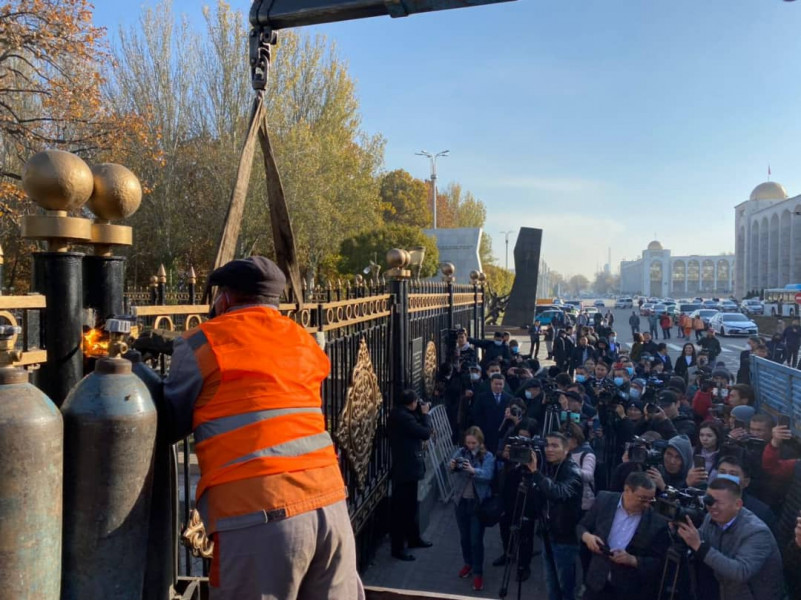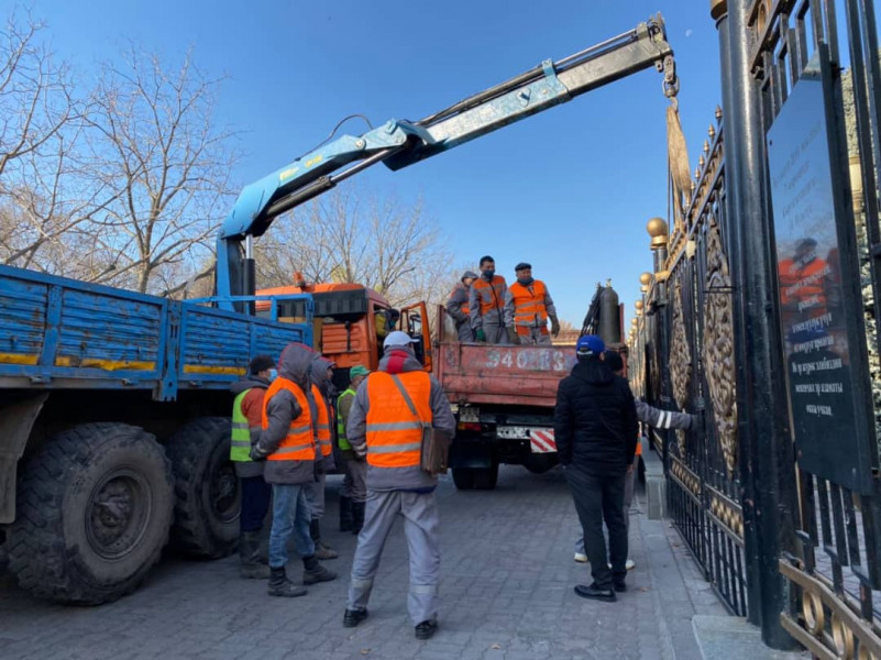Сегодня сотрудники управления землепользования и строительства (УЗС) столичной мэрии и спецподразделение муниципального предприятия «Тазалык» приступили к демонтажу забора вокруг Белого дома.
