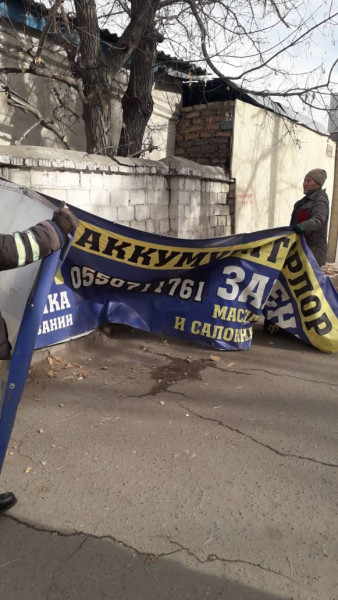 В этот раз мы с МП "Бишкекреклама" демонтировали самовольно установленные рекламные конструкции.Спецотряд «прошелся» по улицам Суеркулова, Горького и пр. Чуй. Демонтированы 99 рекламных конструкций: баннеры, штендеры.После разъяснительных бесед, в добровольном порядке убраны металлические стойки возле дома №26 в микрорайоне №10.