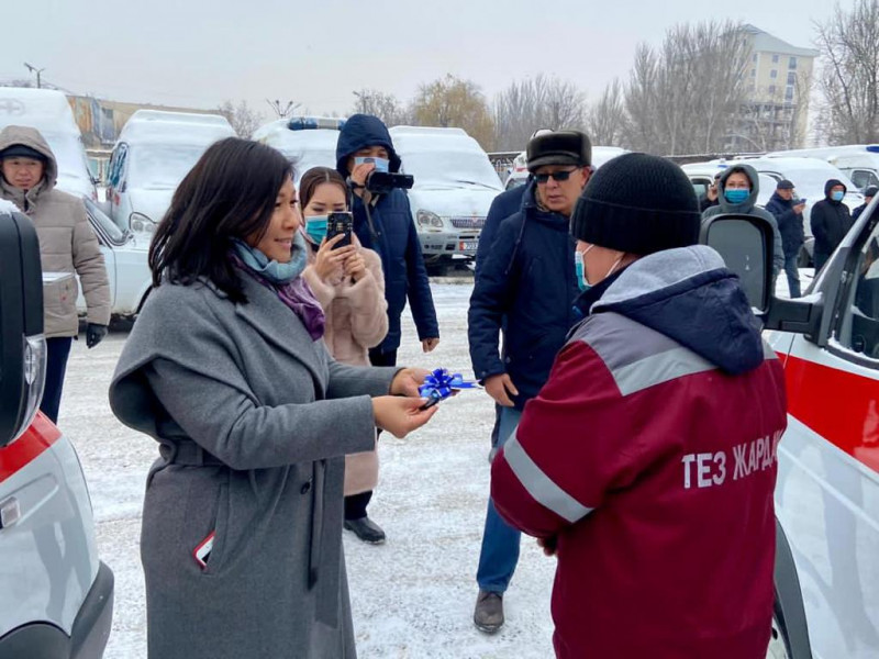 Сегодня вице-мэр по социальной политике Айжан Чыныбаева передала столичной скорой шесть новеньких автомашин скорой помощи класса А.