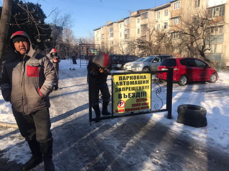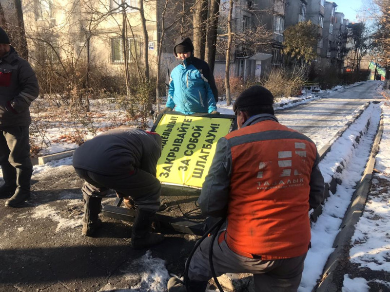 С помощью оперативного сигнала бишкекчан, демонтированы незаконно установленные металлические ограждения в микрорайоне №3 и парковочные барьеры в микрорайоне №5 д.71/1, а в мкр. "Тунгуч" снесены четыре точки по продаже курицы-гриль, навес и один павильон без разрешительных документов.