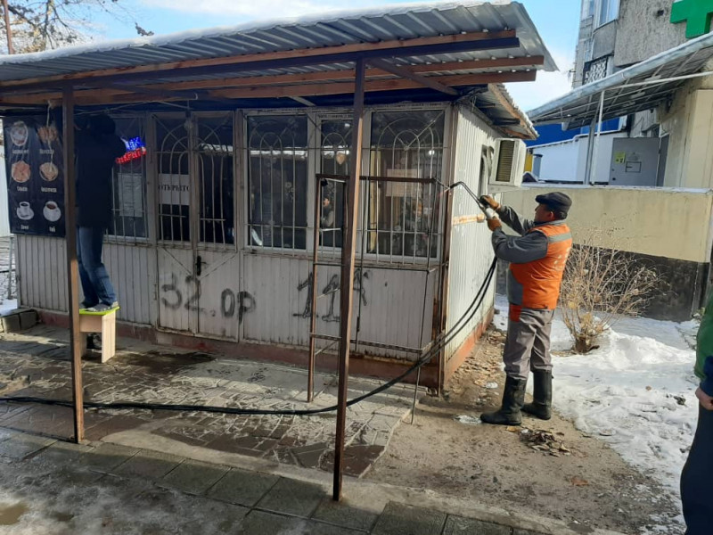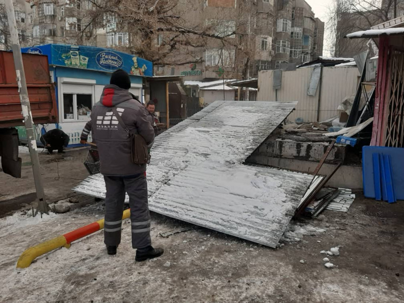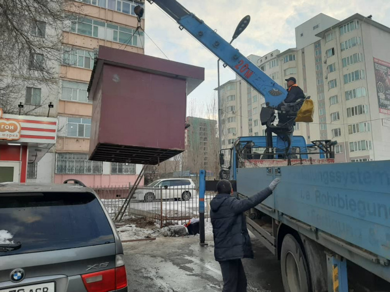 Управление землепользования и строительства (УЗС) и спецподразделение муниципального предприятия «Тазалык» продолжают «очищать» город от самовольно установленных объектов.