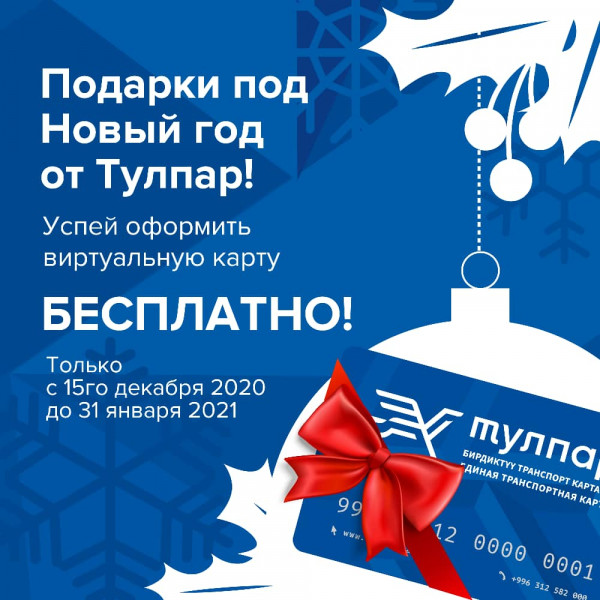 Дорогие горожане-пассажиры! Тулпар подготовил для вас новогодний сюрприз! Завтра, 15 декабря 2020 года по 31 января 2021 года, можно оформить виртуальную карту Тулпар.